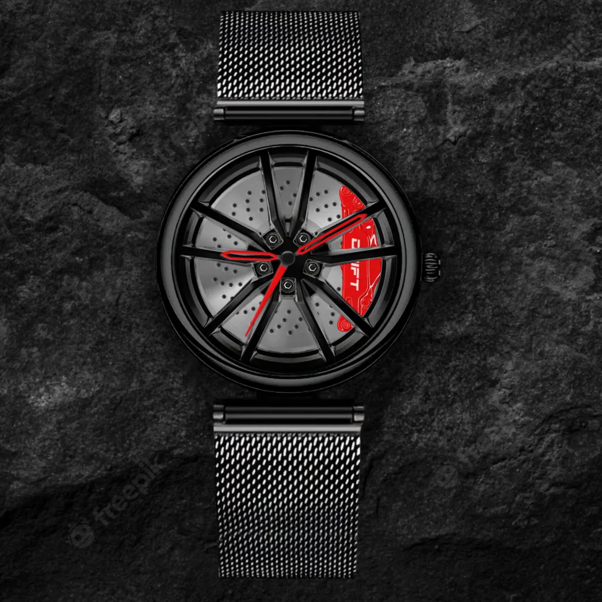 Elevate your style with our Black Mesh Bracelet. Explore the cutting-edge rim-inspired timepieces from a dynamic German startup. Ideal for motorsport, tuning, and auto enthusiasts. #id_46744490246474